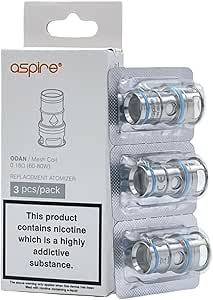 The 0.18 Ohm, 0.2 Ohm Odan coil and 0.3 Ohm Odan coil both feature a mesh coil build. The benefit of mesh is that it has a larger surface area, which allows for more e-liquid to be heated at a faster rate – for a boost in flavour. Mesh coils are also less likely to suffer from hot spots, so they’ll last longer. Featuring specialist wicks, the Odan vape coils feature a combination wick, that utilises linen and organic cotton. These wicks are heat resistant and are suited to both mid wattage and high wattage vaping. The 0.18 Ohm and 0.2 Ohm Aspire Odan coil can be used between 50 – 60W, while the 0.3 Ohm Odan coil can be used between 35 – 45W. o.2 ohm – (50-60w) 0.3 ohm – (35-45w)
