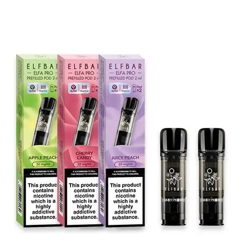 The Elf Bar ELFA Pro Vape Kit, from the makers of the Elf Bar Disposables, is a vape kit which uses pre-filled e-liquid pods. A new and improved pod system following the success of the Elf Bar Mate Pod Kit. The Elf Bar Elfa disposable pods are compatible with the Elf Bar Elfa Kit, and come pre-filled with 2ml of your favourite Elf Bar juice! Information 1 Pack = 2 Pods Features Pod capacity: 2ml pre-filled juice Nicotine content: 2%Nic Salt 20MG Dual coil design Draw activated Device compatibility – Elf Bar Elfa